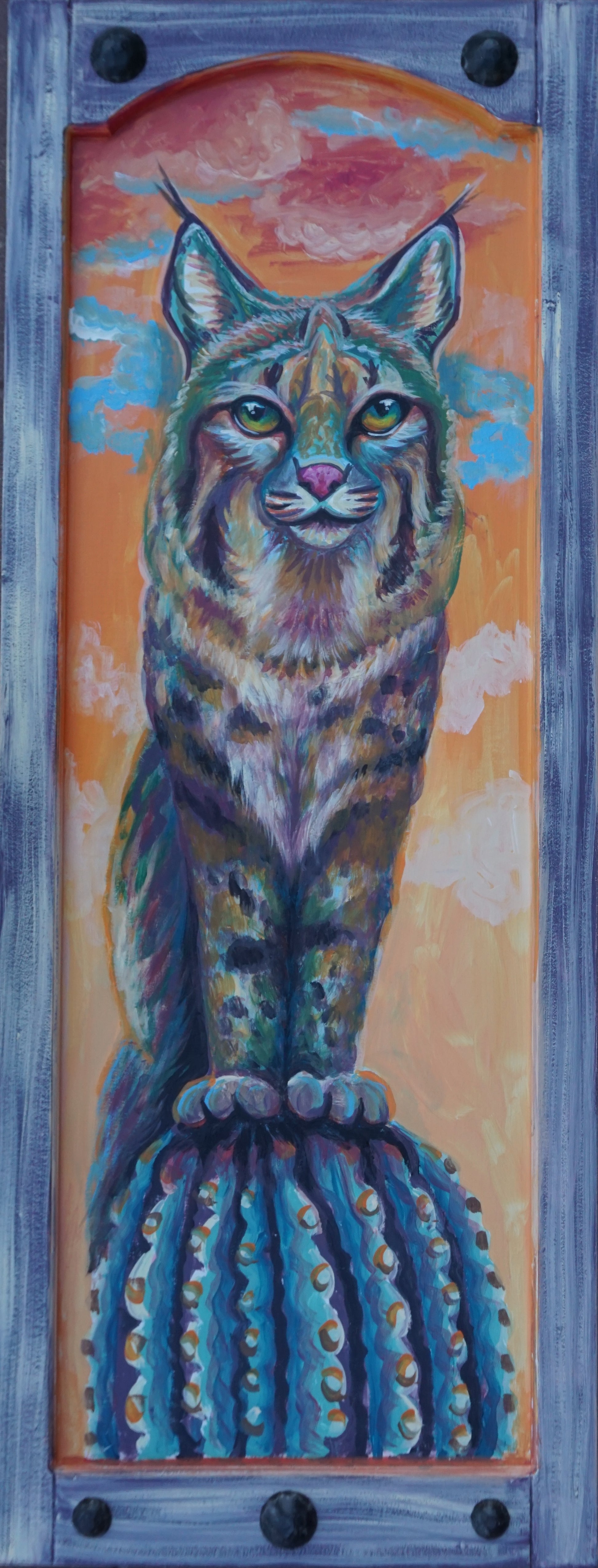 I will never get over the fact that bobcats hang out on top of Saguaro cactuses and hunt from that vantage point. It's truly incredible. This piece celebrates that remarkable act.